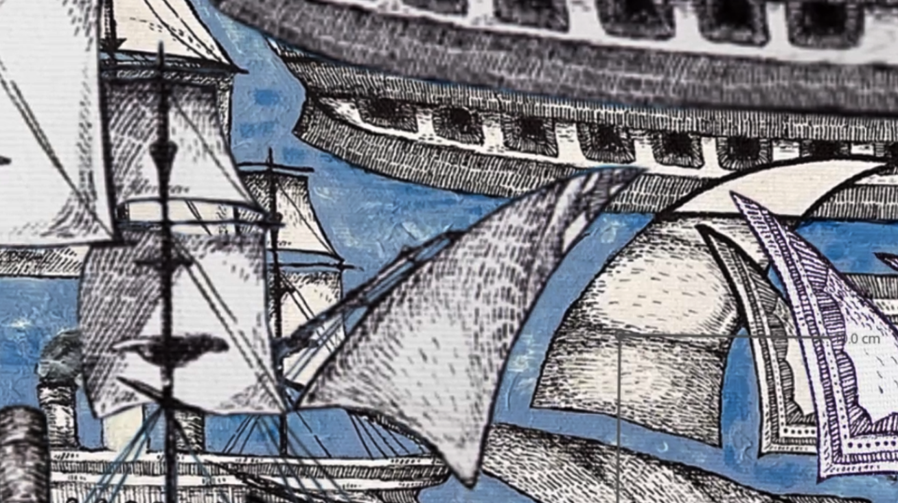 This piece was a mixture of new technical skills and history, merging the lateen sails of my future home in Bahrain with the bold ships that I have come to know after almost nine years living by the sea in Portsmouth, the city that adopted me.